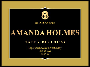 Personalise the Champagne label with your message! Take a look at the label designs below, enter your details and order.